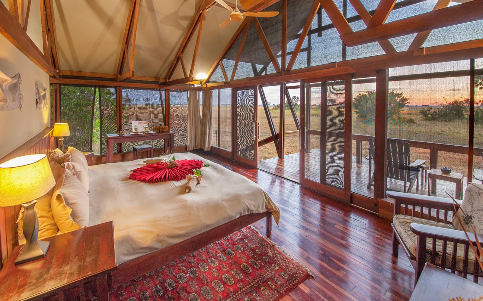 The 8 spacious tents at Lebala Camp are unique and were designed specifically for this camp to emphasise the expansive views across the floodplains and its wilderness setting. As such the see through walls offer great vistas and cooling breezes. Each safari tent is tucked away by itself on a teak deck and is laid out with comfort and privacy in mind.