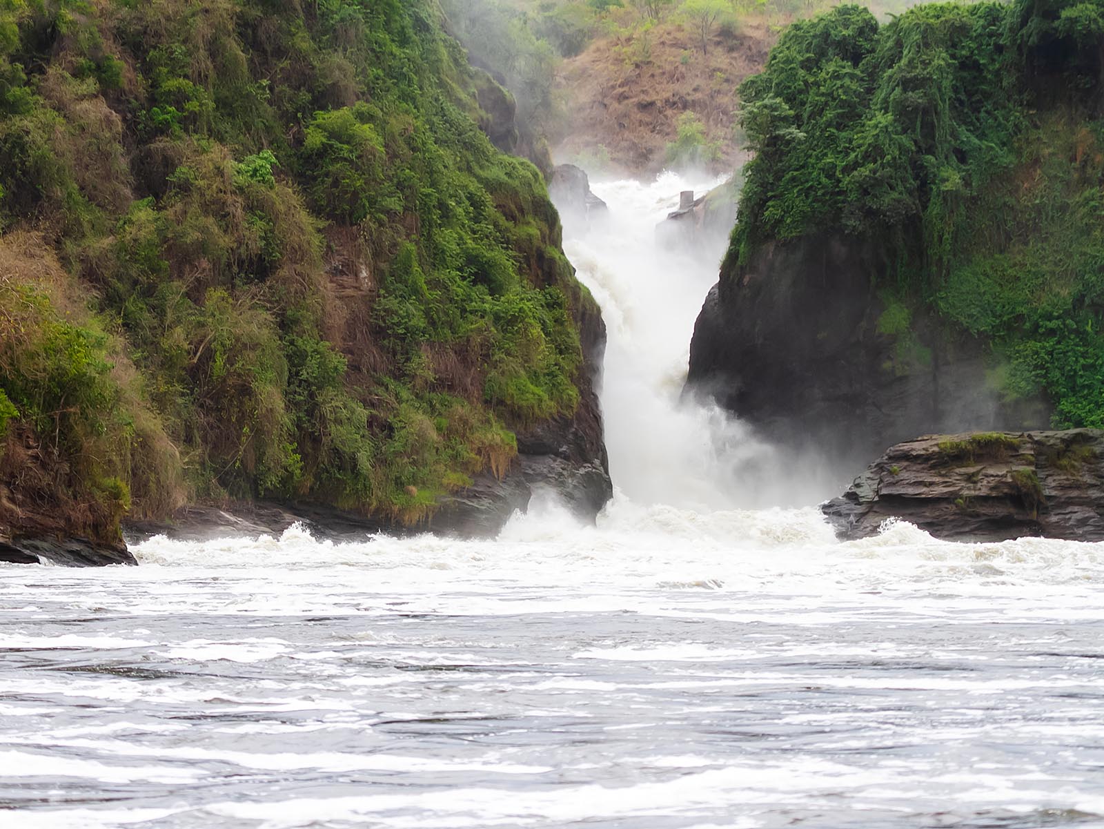 More likely, heading north from the capital, Kampala on an extended Uganda safari holiday you would reach the borassus palm-studded grasslands of Murchison Falls National Park. Here the River Nile, on its route from Lake Victoria northwards falls a spectacular 45m through a ravine only 7m wide at its narrowest, a thundering mass of boiling water in the pools at its base. You can view the falls from close up at the top or enjoy a boat trip along the river towards the foot of the falls, watching out for giant Nile crocodiles sunning themselves on the banks.