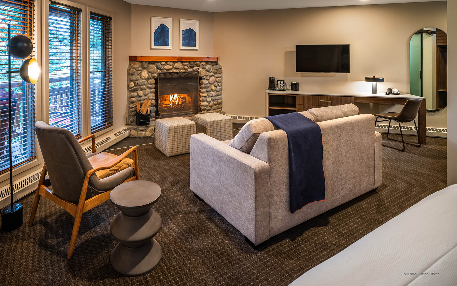 The main lodge features a massive stone fireplace and open beam ceilings with custom-made cherry, pine and bent willow furnishings, whilst guest rooms are adorned with wood-burning stone fireplaces and modern amenities and some feature balconies or patios to soak in the fresh mountain air.
