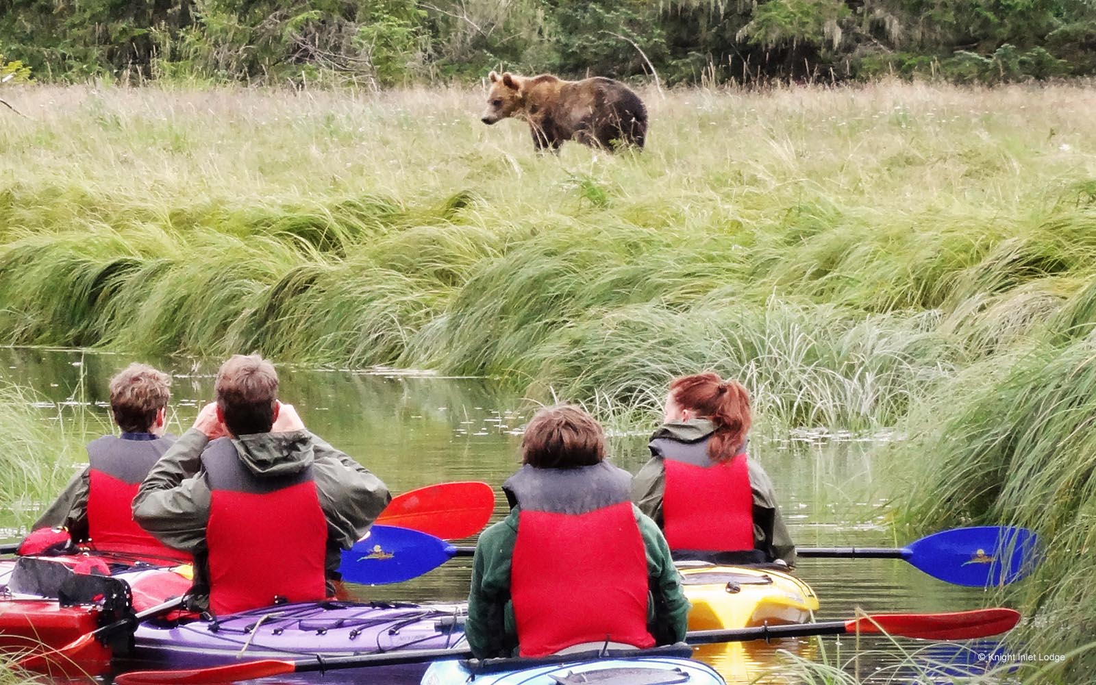 Your adventure begins with a floatplane transfer to the lodge and during your stay you will enjoy daily bear viewing tours (by boat in the spring and summer and on a viewing platform from late August to October). Accompanying you on all excursions is a knowledgeable guide, trained in the local wildlife and natural history of the area. Other activities during your stay may include an interpretive hike of the Kwalate River Valley and a wildlife tracking trip where you will have the opportunity to make plaster casts of the animal prints you find. There are also excursions to see bald eagles and other wildlife and you are free to use the kayaks to explore on an organized estuary tour.