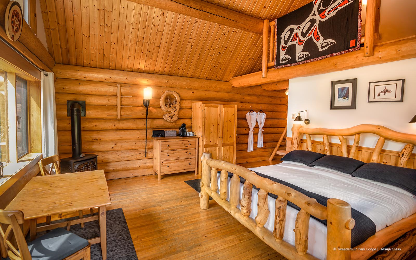 The lodge offers different styles of accommodation in 10 beautiful log and timber-frame chalets, each offering privacy, right on the forest edge with fantastic views. The Loft Chalets set the standard for wilderness lodges in British Columbia, offering the perfect fusion of rustic charm and elevated comfort whilst the Grizzly Log Chalet offer the quintessential log cabin stay, with a handcrafted log-style king bed and walls adjourned with local artwork. For a modern take on wilderness luxury with a Scandinavian flair, choose the Pika Duplex with it large windows from which to admire the spectacular scenery. All chalets feature air-conditioning, a gas fireplace and a small fridge and coffee maker.