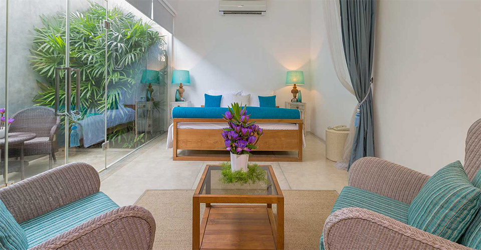 Step through the gardens and you are greeted by 4 adjoining buildings, all overlooking the saltwater pool and just beyond, the beach and ocean. The standard rooms close to the spa are quite small but Palm doubles, Superior Deluxe and Ocean Signature Suites are certainly stylish and spacious for a couple or family. In fact, for extended families the whole of one building can be used.