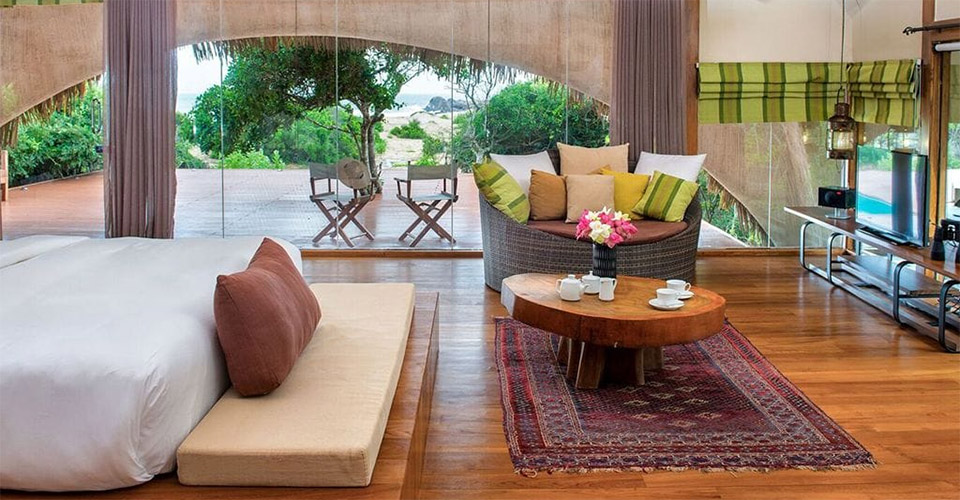 A unique five star high class lodge set among 3 hectares or so of coastal bush and sand dunes a short distance outside of the southern entrance to Block 1 of Yala National Park, you know this is really something difference when you arrive at reception!
