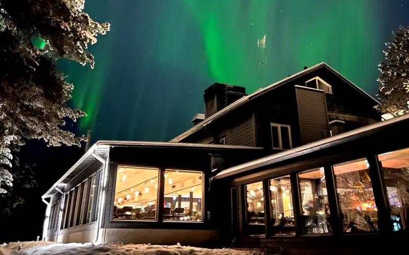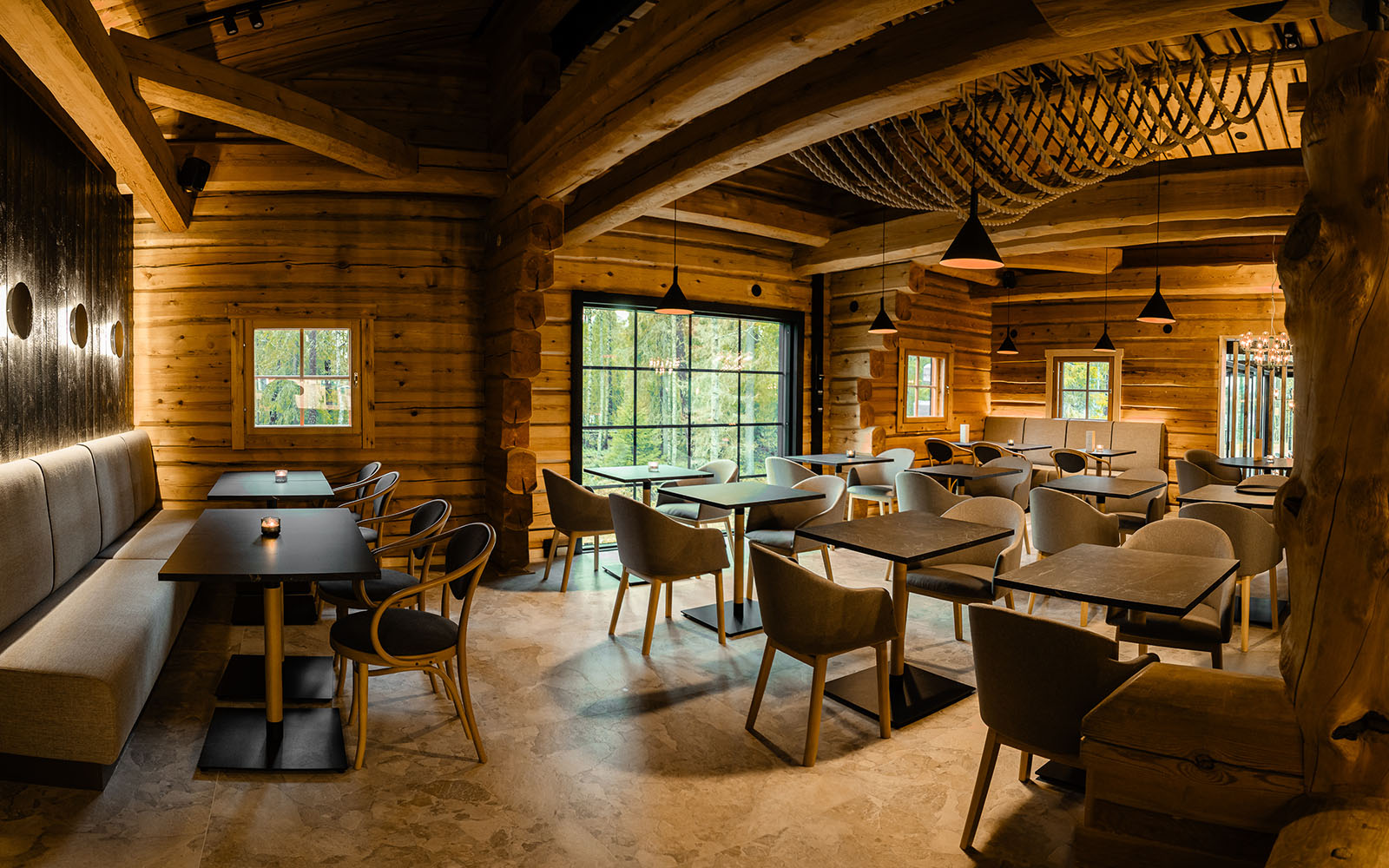 Whichever accommodation you choose, each evening you are invited to dine in the restaurant Niva located in the main lodge building. Offering a warming log fire and tasty Lapp menu, you may also enjoy a drink in the guest bar & lounge after a day of adventure. Sauna facilities are available in the Riverside Suites but for those without you may pre-book some private time in the riverside sauna and outdoor hot tub.