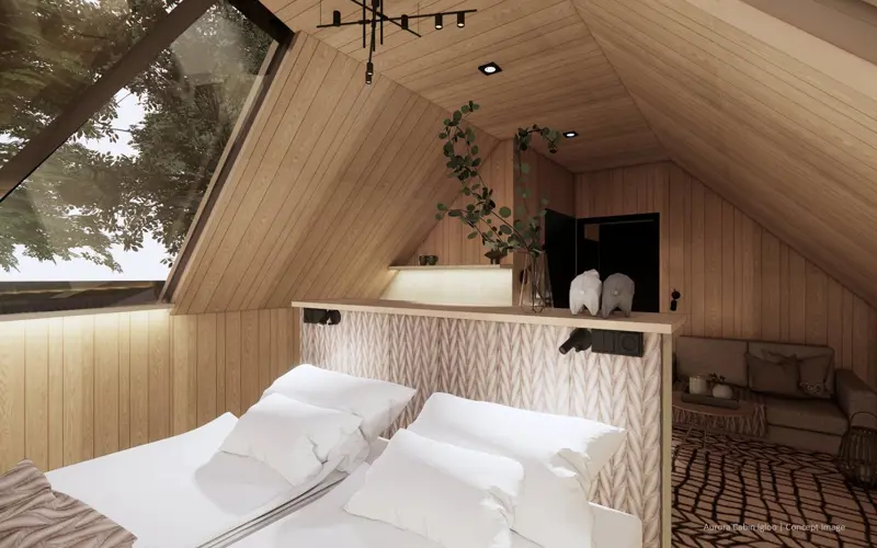 Aurora Cabin Igloo - Brand new for winter 2025 the Aurora cabin Igloo's will allow unforgettable nights under the stars. A double bed is positioned beneath the glass ceiling and there is ample room for up to 2 extra people on a sofa bed. With ensuite facilities these glass roof rooms are perfect for the duration of your holiday but if you would like to indulge for just the one night you may upgrade the first or final night of your stay.