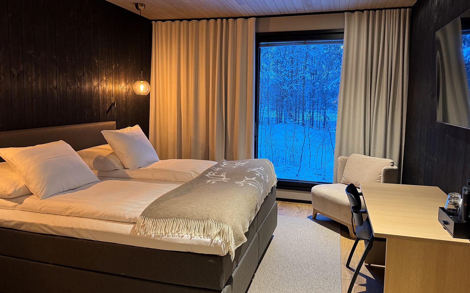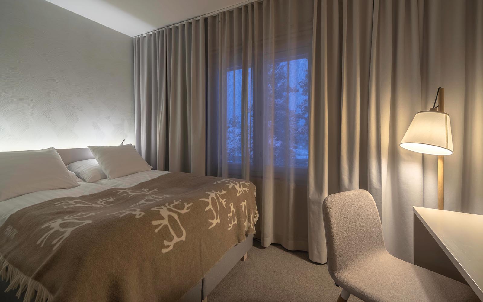 Offering a perfect blend of modern comfort and authentic Lappish charm, this peaceful setting is perfect for those seeking culture and adventure in the far north of Lapland. 30 elegant and spacious guest rooms are offered in two brand-new accommodation buildings. Choose the small but cosy Wilderness Rooms, the slightly larger Arctic Rooms or the more spacious Superior Sauna Rooms. All are decorated in soft neutral tones offering a sanctuary of cosy relaxation after a day of adventure.