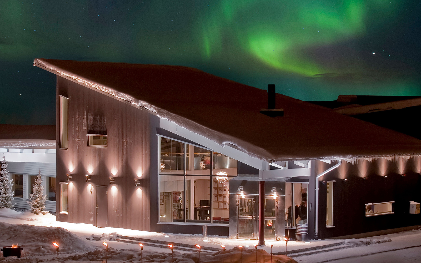 Accommodation is offered in cosy chalet style cabins, each boasting hotel standards and fresh interiors. On-site facilities include Restaurant Ripon, whose menu is inspired by the Sami wilderness and created using the very best local and regional ingredients, and the Aurora Spa, a relaxing haven with sauna, indoor and outdoor pool and chill out area.