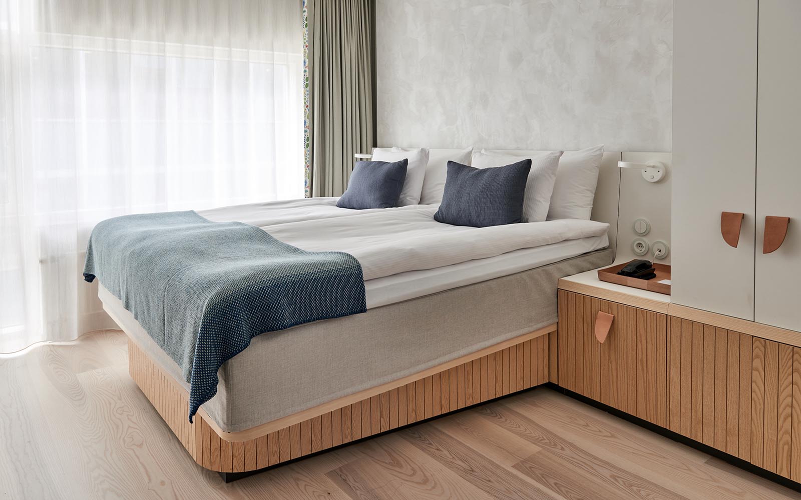 Guests rooms reflect the Nordic concept of tranquility, harmony and recovery, and invite you into a warm and welcoming light filled space, featuring all amenities required, including tea and coffee making facilities, minibar and complimentary WiFi. Whether you choose a Standard, Superior or Deluxe Room or opt for a larger suite, all have been styled by the careful and meticulous hands of designer John Tong and are a joy to experience with their high-quality comfortable beds, acoustic insulation and luxurious Björk & Berries bathroom products.
