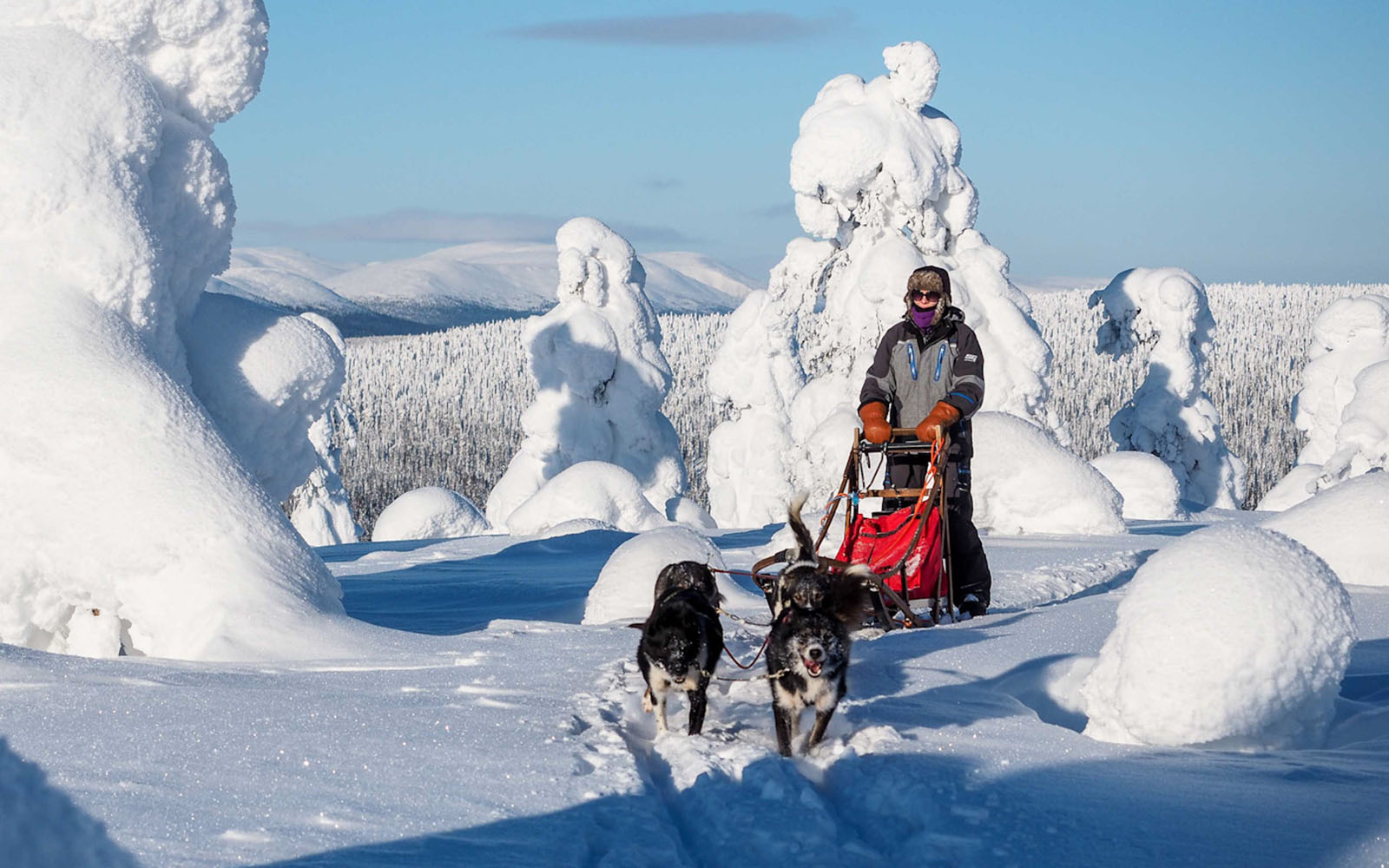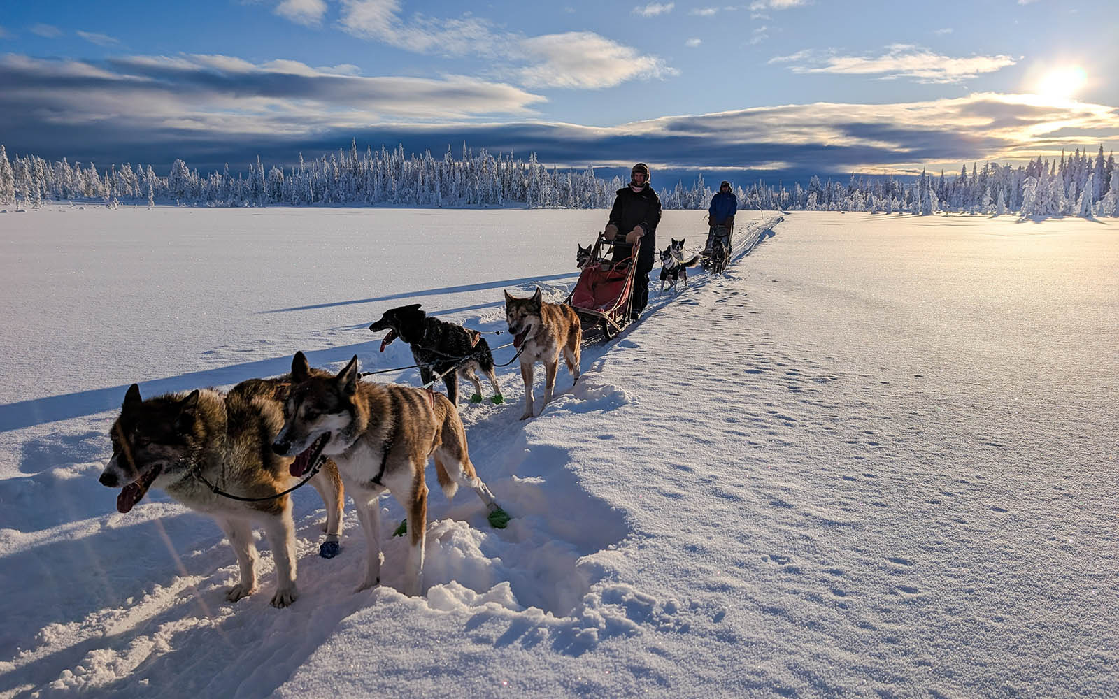 Discover the magic of the Arctic wilderness as you drive your own team of Alaskan huskies beneath snow-covered fells, through enchanted forests and across frozen lakes. This small-group, hands-on experience strips life back to basics, offering a genuine connection with nature and the dogs that guide you through it.