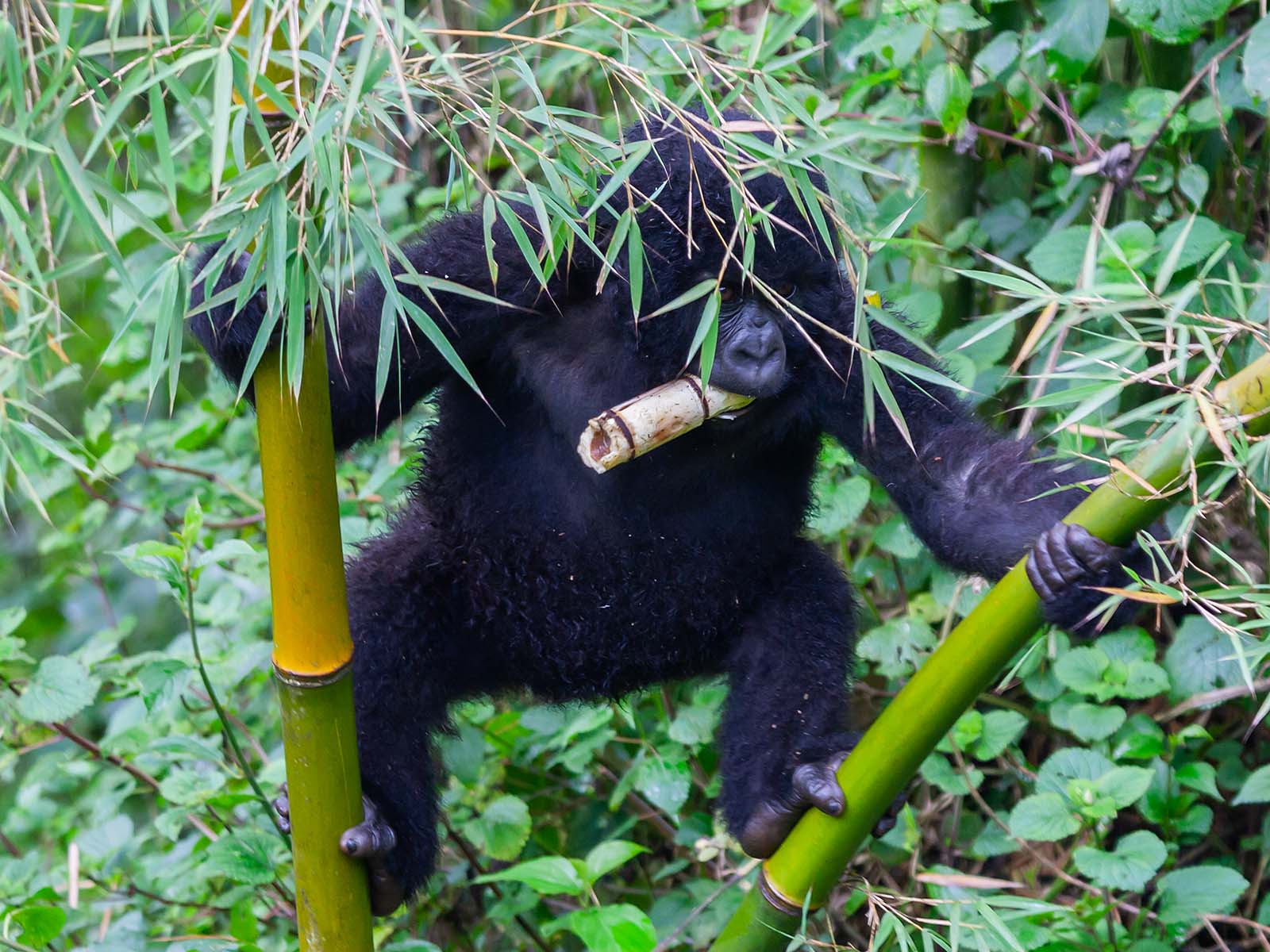 The afternoon is at leisure but we can book a birdwatching walk in a forest or a gentle canoe down a river. Among the friendly Rwandans time passes quickly and the next morning the trekking is shorter as you go out in search of golden monkeys that tend to live in the bamboo zone and on the edge of farmland that is at a lower altitude that the habitat of the mountain gorillas.