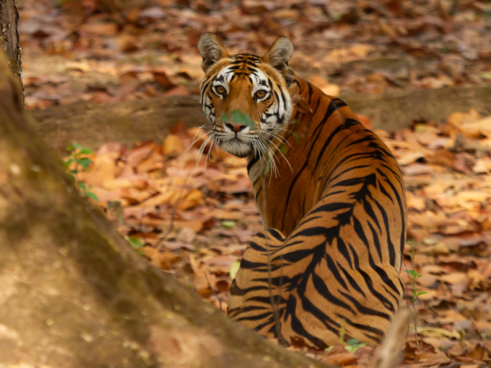 Another journey through the village and forests brings you to Pench National Park. This scenic reserve covered in prime teak forest and grassland nestles in the undulating terrain of the Satpura Range and is drained by the Pench and Wainganga rivers. The density of prey including gaur, ensures this small tiger reserve has a good population of tigers and other predators and over 250 species of birds that include Malabar pied hornbills, painted storks, crested serpent eagles, oriental honey and white-eyed buzzards to name just a few.